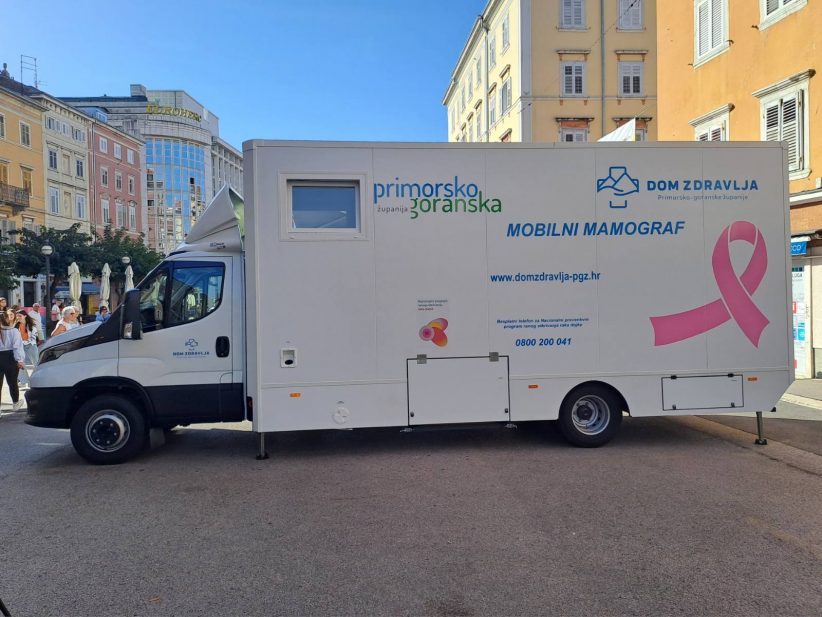 Mamograf ženi, a ne žena mamografu – slogan je nove inicijative prevencije zloćudne bolesti. Ženama u Primorsko-goranskoj županiji od danas je na raspolaganju mobilni mamograf vrijedan 332 tisuće eura. Na trgu 128. brigade HV Rijeka, župan Zlatko Komadina predao je ključeve novog mobilnog mamografa, vrijednog gotovo 332 tisuće eura, ravnateljici Doma zdravlja PGŽ Emini Grgurević Dujmić.