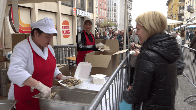 Na Trgu 128. brigade Hrvatske vojke održana je tradicionalna marenda za građane uoči Uskrsa kojoj su se pridružili i riječki gradonačelnik Marko Filipović sa suradnicima.
