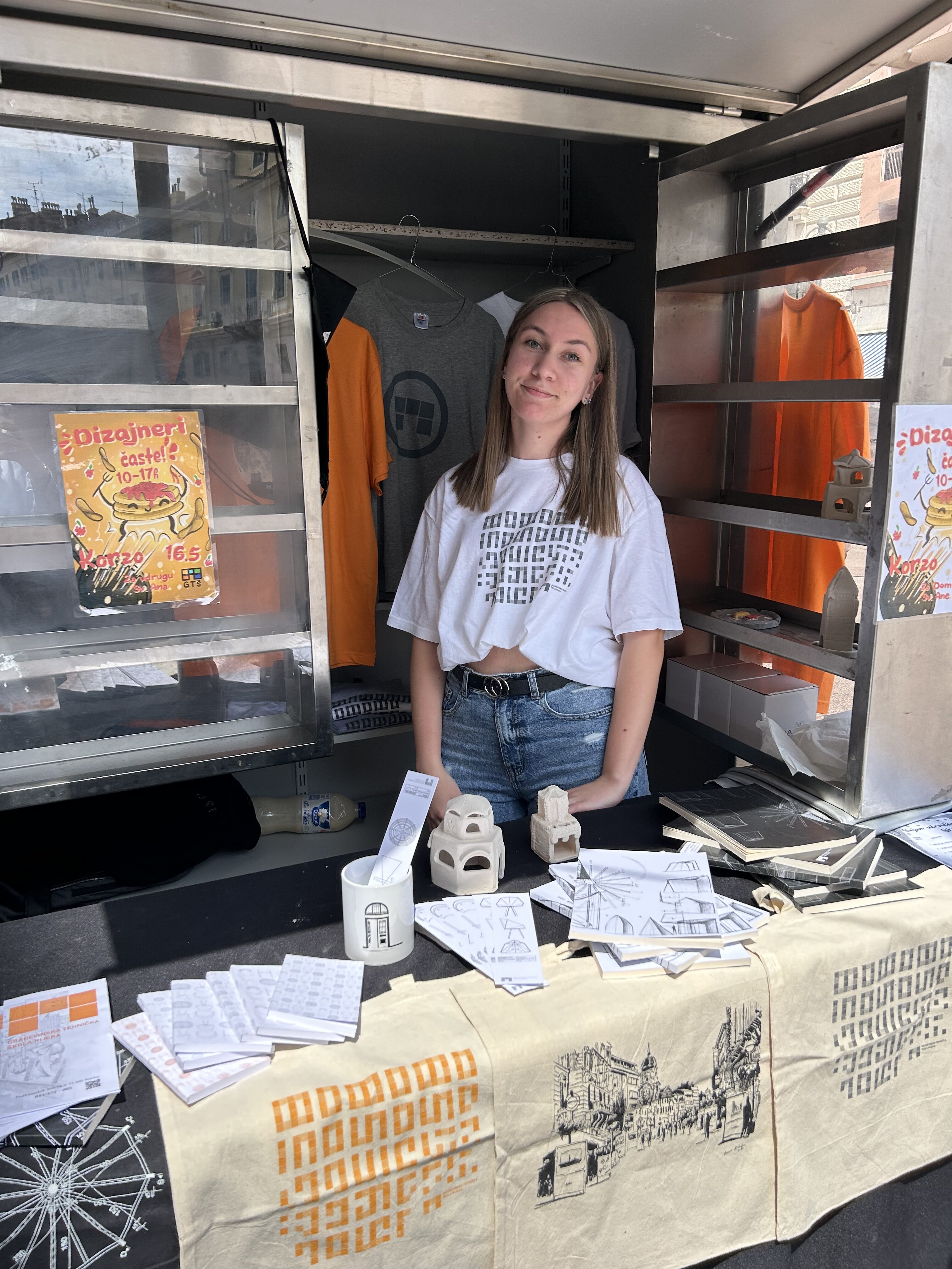 Dolazimo iz Građevinske tehničke škole Rijeka smjer dizajner unutrašnje arhitekture te je ovo od Zadruge Skica koju također dizajneri vode, Dizajneri časte umjesto gađanja brašnom, skupimo od Zadruge prihod kupimo sredstva za palačinke i onda skupljamo za koga se dogovorimo te godine, rekle su nam vesele maturantice.