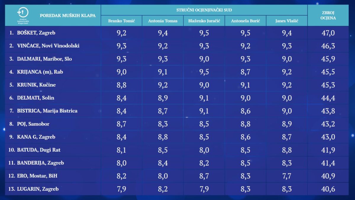 Od muških klapa iz naše županije u finalu će pjevati Vinčace iz Novog Vinodolskog i Krijanca s Raba.