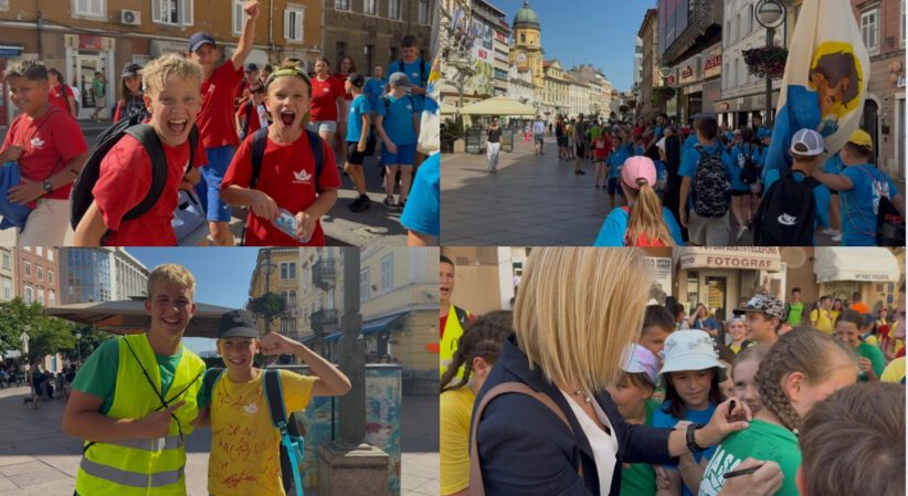 Crvena, žuta, plava i zelena – u tim su se bojama mališani iz riječkog Oratorija spustili u srce grada i podigli atmosferu. Glazba, ples, navijanje, ali i poneka biblijska lekcija – sve to u paketu jednog ljetnog dana koji je iznenadio i razveselio prolaznike. Umjesto nogometaša, terenom je protrčala gradonačelnica, a potpis su tražili najmlađi navijači.