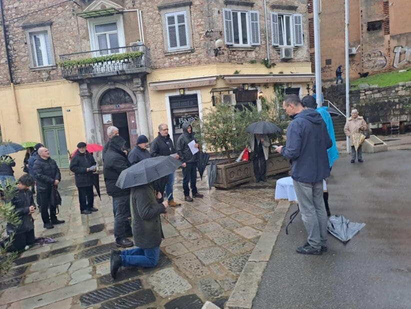 Prosvjednici su jutros na Trgu Grivica u Rijeci dočekali “molitelje” s palestinskom zastavom i transparentom na kojem je pisalo “Klečite li za palestinske majke i djecu?”. Nedugo zatim, policija je privela troje sudionika prosvjeda.Prema riječima prosvjednika, dobili su prekršajni nalog zbog isticanja palestinske zastave. Iz Policijske uprave primorsko-goranske potvrdili su događaj, navode da su postupali u skladu sa zakonskim propisima i izdali najmanju propisanu kaznu od 200 eura,piše Novilist.hr.