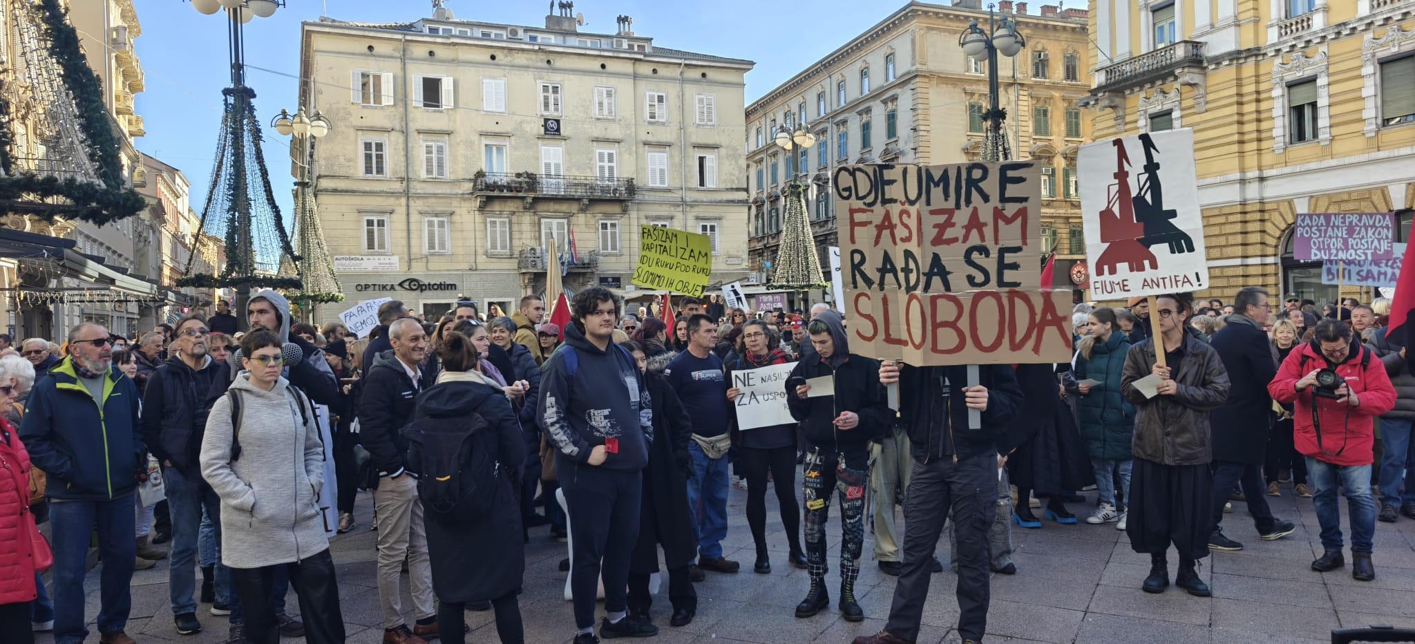 U središtu Rijeke u nedjelju održan je masovni prosvjedni marš “Ujedinjeni protiv fašizma”, na kojem se okupilo više od tisuću građanki i građana. Okupljanje je započelo u podne na Jadranskom trgu, odakle je povorka krenula u znak upozorenja na sve učestalije pojave novog fašizma u hrvatskom društvu.