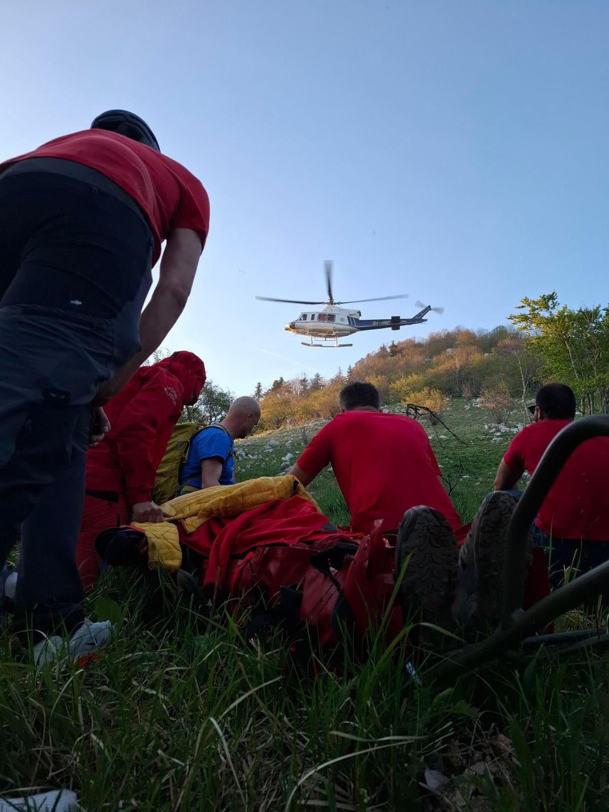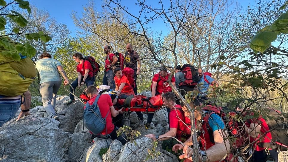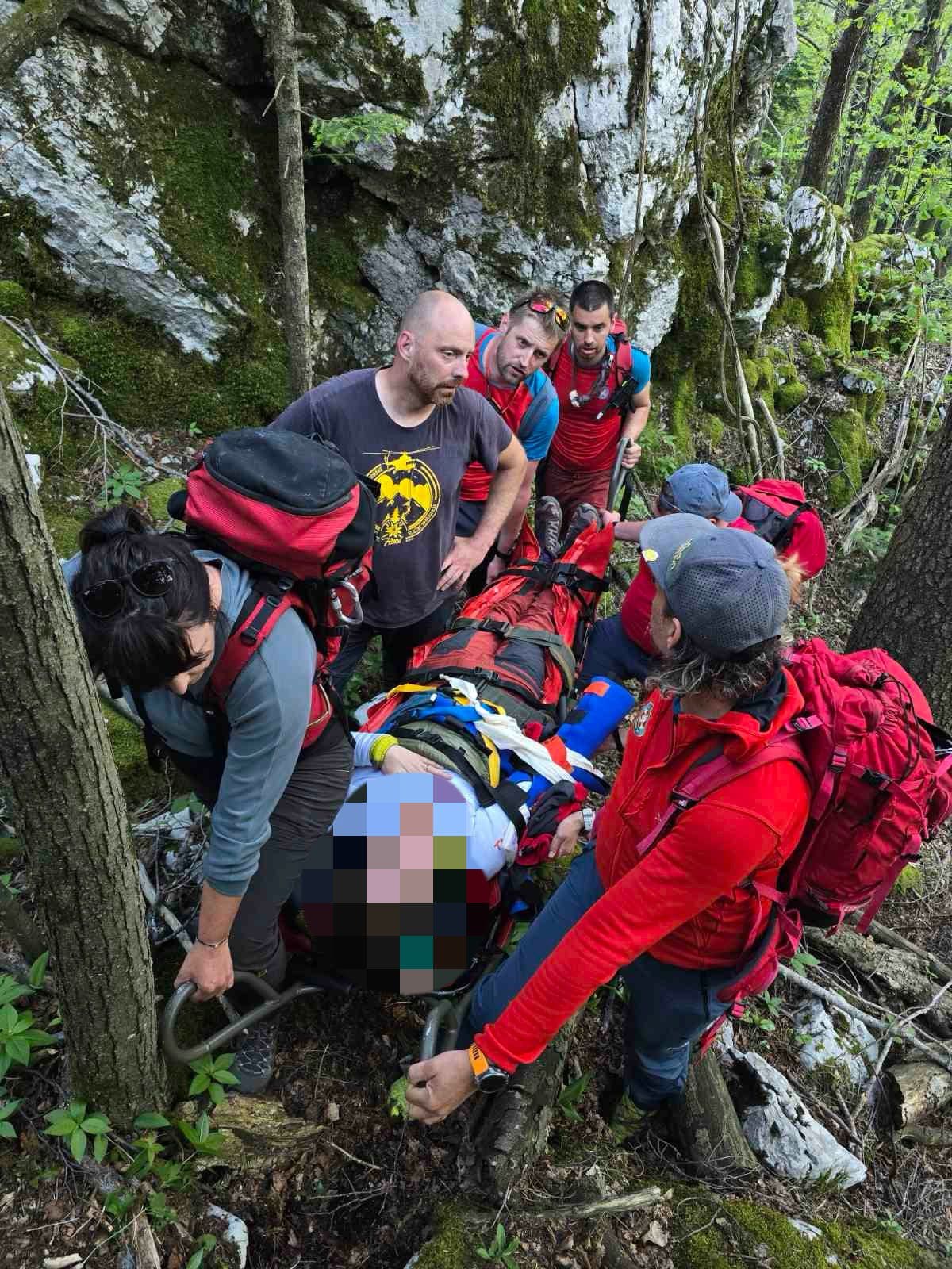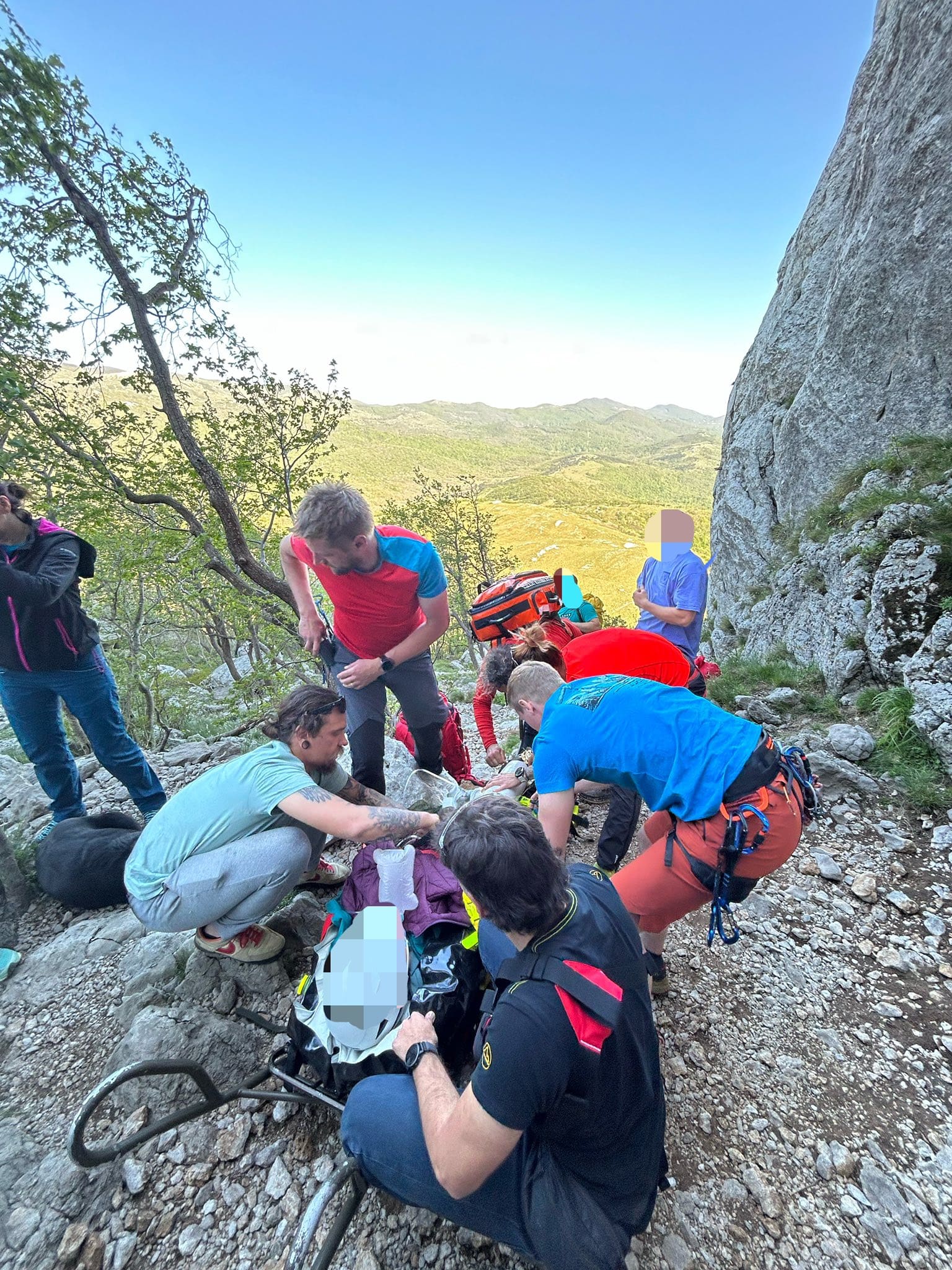 U ključnom trenutku, HGSS je podijelio svoje resurse: dio tima nastavio je prema Kamenjaku, dok je ostatak preusmjeren na novu lokaciju. Na Kamenjaku su spašavatelji, uz pomoć članova alpinističkog kluba koji su se zatekli na mjestu nesreće, imobilizirali unesrećenu u vakuum madrac te je transportirali nosiljkom UT2000 do ceste, gdje je predana hitnoj medicinskoj pomoći. - Povijesna helikopterska akcija na Medviđaku