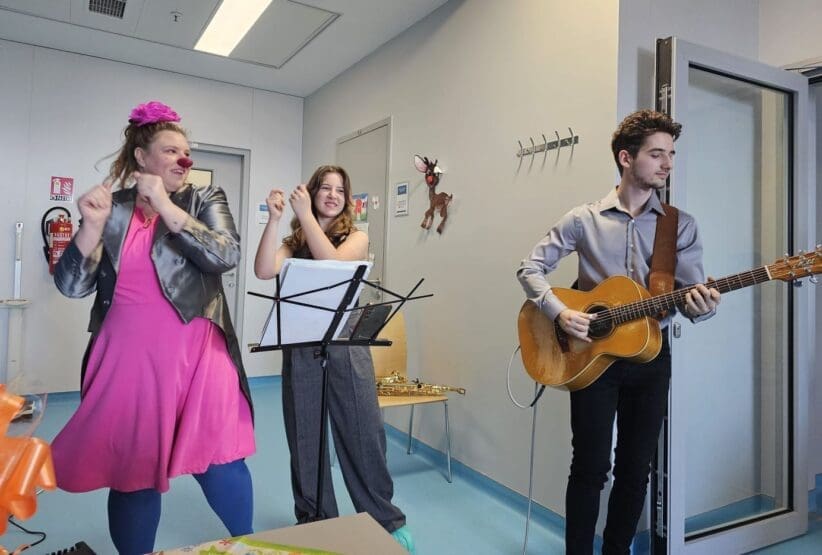 Riječ je o jedinstvenom glazbenom programu prilagođenom bolničkim uvjetima, koji izvodi mali orkestar – duet glazbenika uz klauna. Kombinacijom klasične glazbe, igre i humora stvara se toplo i podržavajuće okruženje koje mališanima i njihovim obiteljima pruža predah od svakodnevice liječenja.